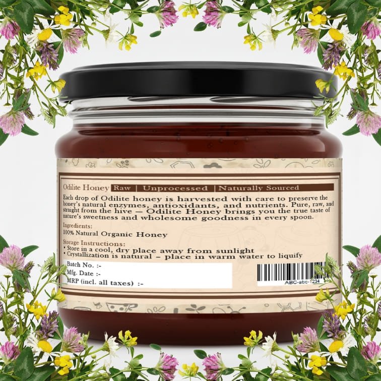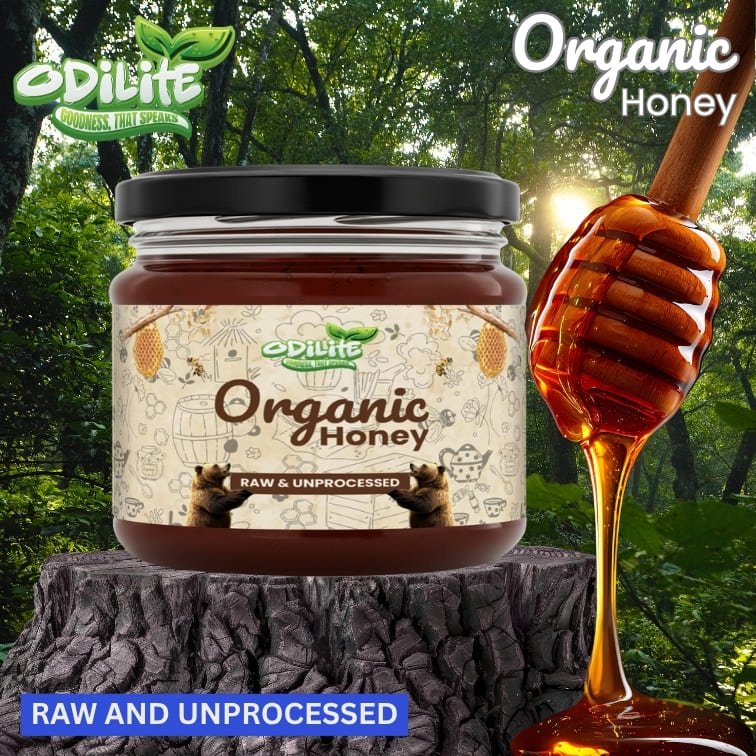 Odilite Natural Premium Organic Honey is raw, unprocessed, and naturally sourced from pristine floral fields and wild forest regions. Each drop is harvested with care to preserve the honey’s natural enzymes, antioxidants, and nutrients. Pure, raw, and straight from the hive — Odilite Honey brings you the true taste of nature’s sweetness and wholesome goodness in every spoon.