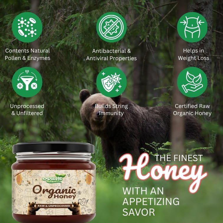 Odilite Natural Premium Organic Honey is raw, unprocessed, and naturally sourced from pristine floral fields and wild forest regions. Each drop is harvested with care to preserve the honey’s natural enzymes, antioxidants, and nutrients